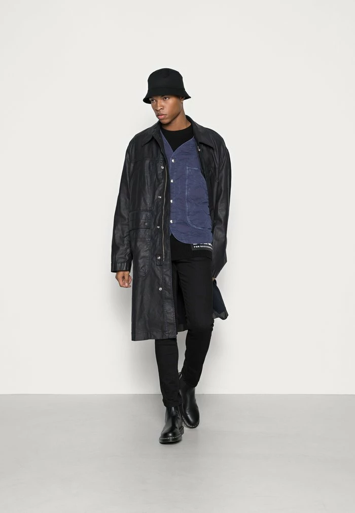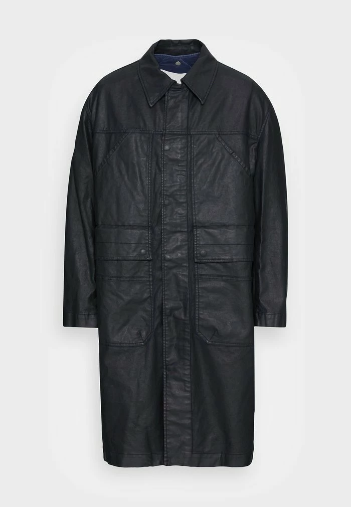 - Details: Inseam pockets, button row, lined fastener, covered fastener, Two-way zipper